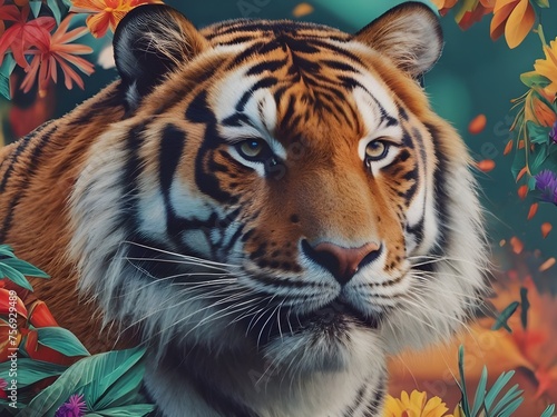 © Borys, Naklejka premium Captivating, high-quality image for the internet in 2024 featuring a detailed and vibrant tiger. Integrate trending or culturally relevant elements, emphasizing colors, composition Generative AI