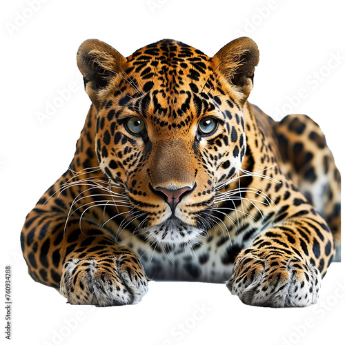 © Ram rider, Obraz premium Captivating image of a fierce wild jaguar cat charging towards the camera with intense eyes ,set against a white background