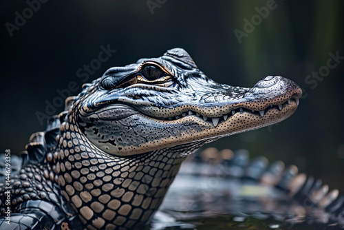 © MaryInPhoto, Obraz premium Captivating image showcases charming timeless allure of an alligator in its natural habitat, highlighting its graceful movements in charming dark and mysterious waters, and capturing charming dynamic