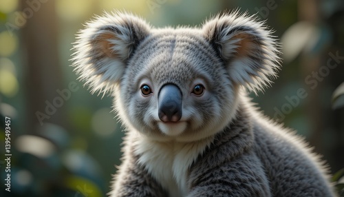Fototapeta premium Captivating Koala Portrait with Soft Fur and Gentle Forest Backdrop