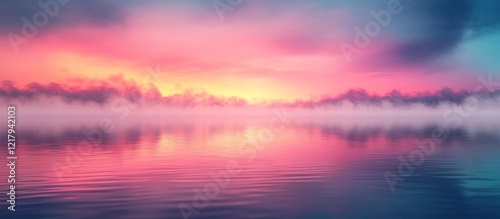 © Waraporn, Fototapeta premium Captivating landscape scene of a vibrant sunset reflecting in the still waters of a serene lake creating a dreamlike and atmospheric ambiance with stunning colors and peaceful tranquility