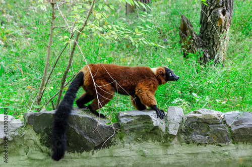 © Ninaveter, Fototapeta premium Captivating Lemur Walking on Stone Wall in Natural Habitat