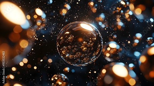 © pkproject, Obraz premium Captivating Metallic Shapes Floating in Surreal Cosmic Scene