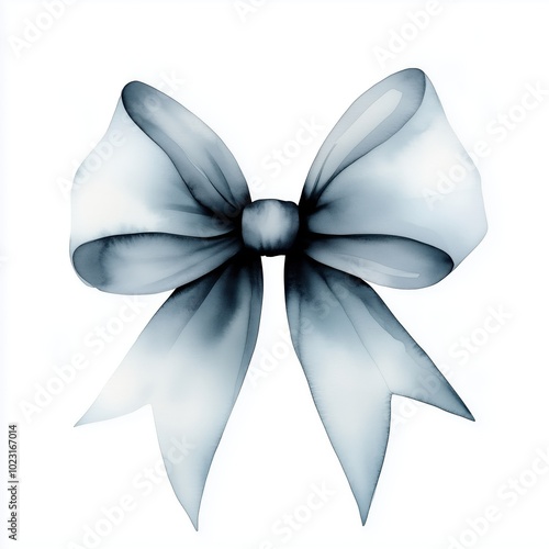 Naklejka premium Captivating monochrome bow shaped fabric ribbon with a delicate wispy floral...