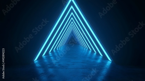 © pkproject, Naklejka premium Captivating Neon Blue Glow in Minimalist Sci-Fi Void with Geometric Shapes