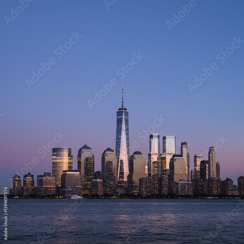 © Deepa, Fototapeta premium Captivating New York City Skyline at Dusk Bathed in Golden Hour Light
