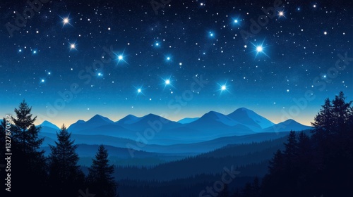 © StarzDream, Naklejka premium Captivating Night Sky with Stars Over Majestic Mountain Range