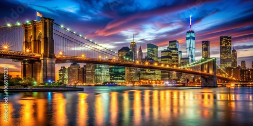 Fototapeta premium Captivating Nighttime View of Brooklyn Bridge with Illuminated Skyscrapers in...