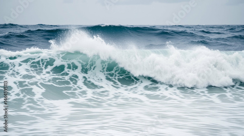Fototapeta premium Captivating ocean wave crashing and spraying on a cloudy day outdoors