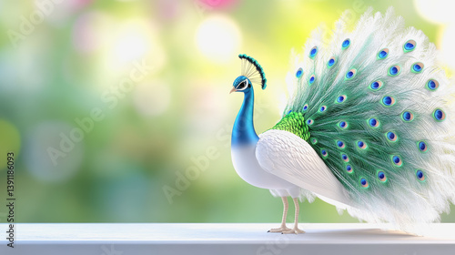 © Chalita, Fototapeta premium Captivating peacock spreading its gorgeous feathers in a stunning full body illustration of nature's beauty