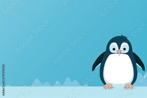 © juliars, Naklejka premium Captivating Penguin blue background. Water sea beach. Generate Ai