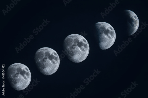 Naklejka premium Captivating Phases of the Moon in Dark Night Sky with Silvery Luminescence