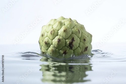 Fototapeta premium Captivating Photo of Custard Apple Floating in White Water Background, Serene...