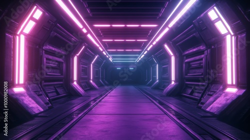 Fototapeta premium Captivating Photography of a Space Station Corridor with Glowing Neon Lights