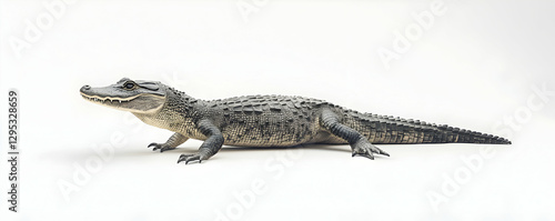 © Gustav, Naklejka premium Captivating Portrait of a Juvenile Alligator on a Seamless White Background showcasing reptile diversity and highlighting the unique characteristics of this young predator