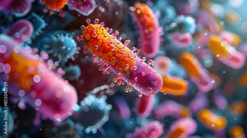 © Bos Amico, Fototapeta premium Captivating Portrayal of Gut and Skin Microbiota Thriving Microbiome Dynamic Biome Intricate