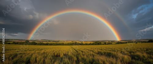 Obraz premium Captivating rainbow arching over lush fields nature landscape scenic...