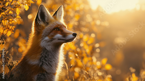 Obraz premium Captivating red fox portrait in the enchanting forest at sunset nature photography warm atmosphere