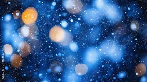 © Sam-th, Obraz premium Captivating Soft Focus Background of Snowfall and Bokeh Lights Creating a Dreamy Winter Scene in Blue Hues for Seasonal Mood and Festive Atmosphere