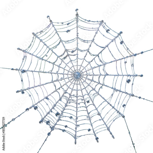 Fototapeta premium Captivating spider web glistening with dew drops natural environment close-up...