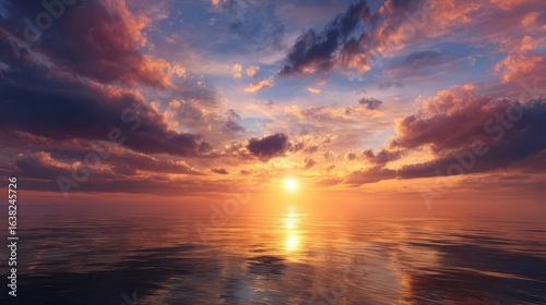 © Kitta Studio, Fototapeta premium Captivating Sunrise Over Ocean with Dramatic Cloudy Background