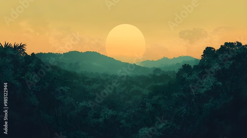© Bijali, Obraz premium Captivating sunset view over rolling hills wallpaper image
