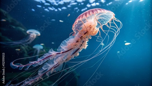 Fototapeta premium Captivating Underwater Portrait of Ethereal Jellyfish in Vibrant Colors
