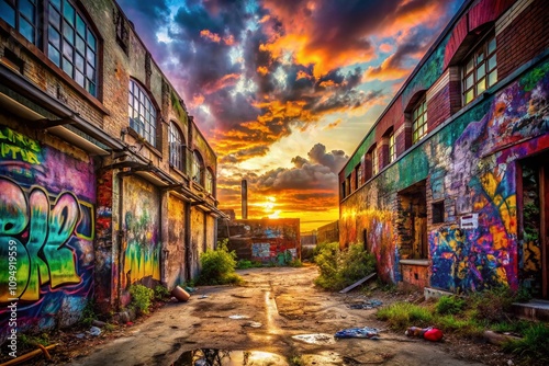 © Supittra, Fototapeta premium Captivating Urban Exploration Photography of Abandoned Buildings and Hidden Alleyways in the Heart of the City, Showcasing Gritty Textures and Unique Architectural Details