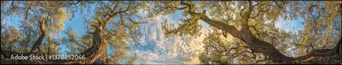 © BrandwayArt, Fototapeta premium Captivating view of tree canopies under a vibrant sky