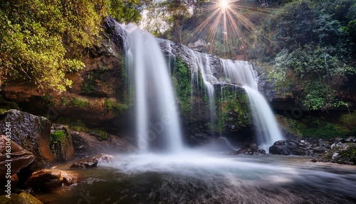 Obraz premium captivating waterfall scene with frozen time and glimmering suspended...
