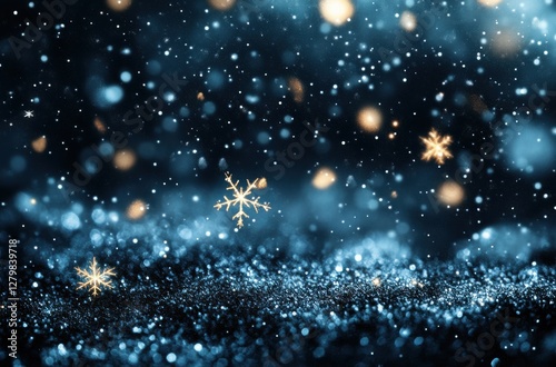 Obraz premium Captivating Winter Wonderland Scene with Sparkling Snowflakes and Soft Blue...