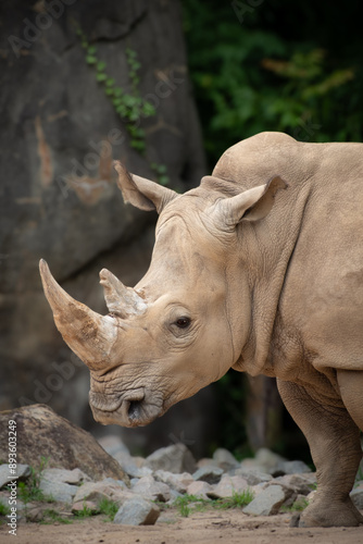Naklejka premium Captive rhinocerous looks at camera