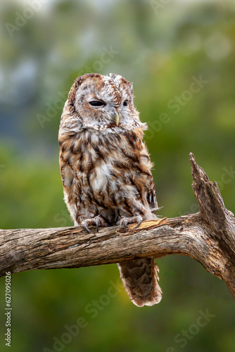 © Dennis Laughlin, Obraz premium Captive Screech owl on branch