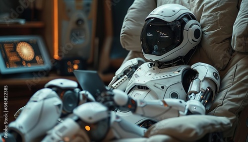 Fototapeta premium Capture a futuristic scene of a robot nurse caring for an elderly person in a modern home