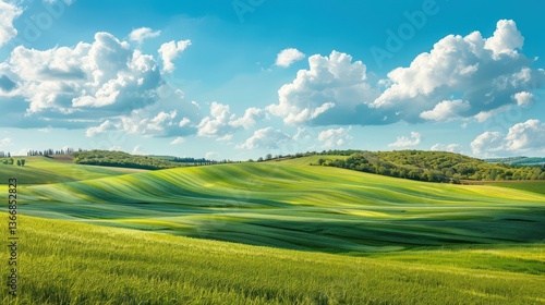 © Keo, Fototapeta premium Capture a scenic view of countryside landscapes with rolling hills and open fields, offering a tranquil backdrop for real estate advertising.