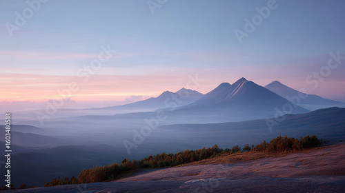 © Miroslav, Naklejka premium capture majestic volcanic caldera in guatemala at sunrise viewed from above revealing breathtaking beauty of