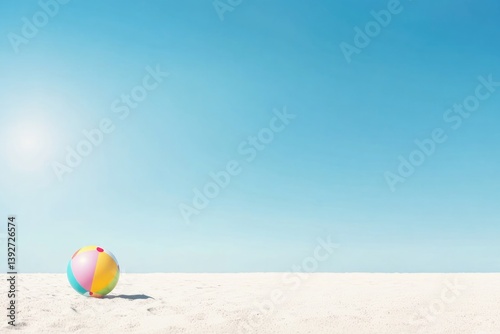 © Andrei, Naklejka premium capture minimalistic image of bright sandy beach under clear blue sky with single colorful beach ball slightly off-center