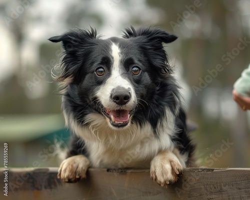 Fototapeta premium Capture the bond between a dog and their handler during a challenging agility course ,close-up,ultra HD,digital photography