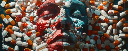 Fototapeta premium Capture the duality of painkillers and the potential dangers of overdose in a thought-provoking artwork