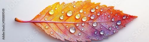 © Muhawaii, Fototapeta premium Capture the essence of transpiration using watercolor for a vivid leaf with droplets shimmering in sunlight