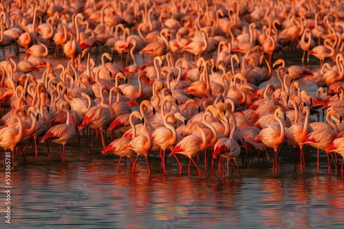 © Sascha, Naklejka premium Capture the stunning colors of a flock of flamingos taking flight