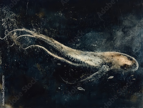 © Thirawat, Obraz premium capturing a giant squid graceful movement through the water.