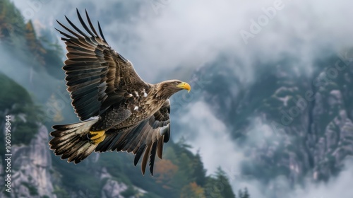 © Attasit, Fototapeta premium Capturing a majestic eagle soaring above the mountains