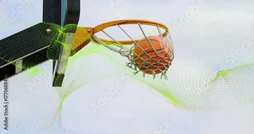 Fototapeta premium Capturing basketball rim dropping orange basketball through net outdoors,...