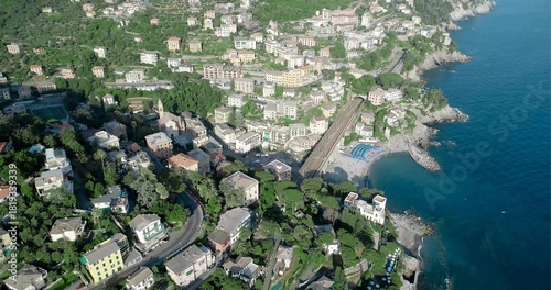 Naklejka premium Capturing pastel buildings clustering on steep terraced hillside by rocky...