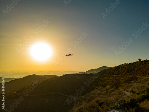© Jaehoon, Obraz premium Capturing Sunrise on Drone