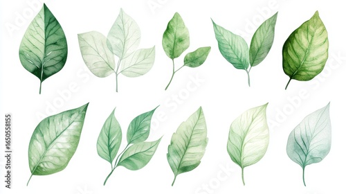 Fototapeta premium Capturing the essence of green leaves a botanical watercolor collection in a...