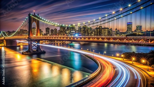 Obraz premium Capturing the ethereal dance of light trails across timeless bridges.