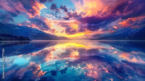 Fototapeta premium "Capturing the Tranquility: A Serene Sunset Over the Horizon, Embracing the...