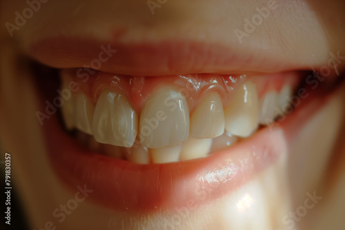 Fototapeta premium Capturing the warmth and joy of a person's smile, focusing on the white teeth and the emotion it conveys